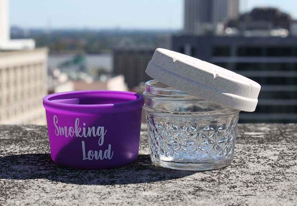 We created the world's first silicone koozie for the 4oz mason jar and paired it with an eco fiber child resistant lid to make the perfect reusable stash jar. The koozie fits like a tailored glove and is made from 100% silicone. Our lids are made in America from FDA Polypropylene that is 30% re:purposed farm waste and hemp fibers, allowing you to store your stash safely away from children as well as sunlight.